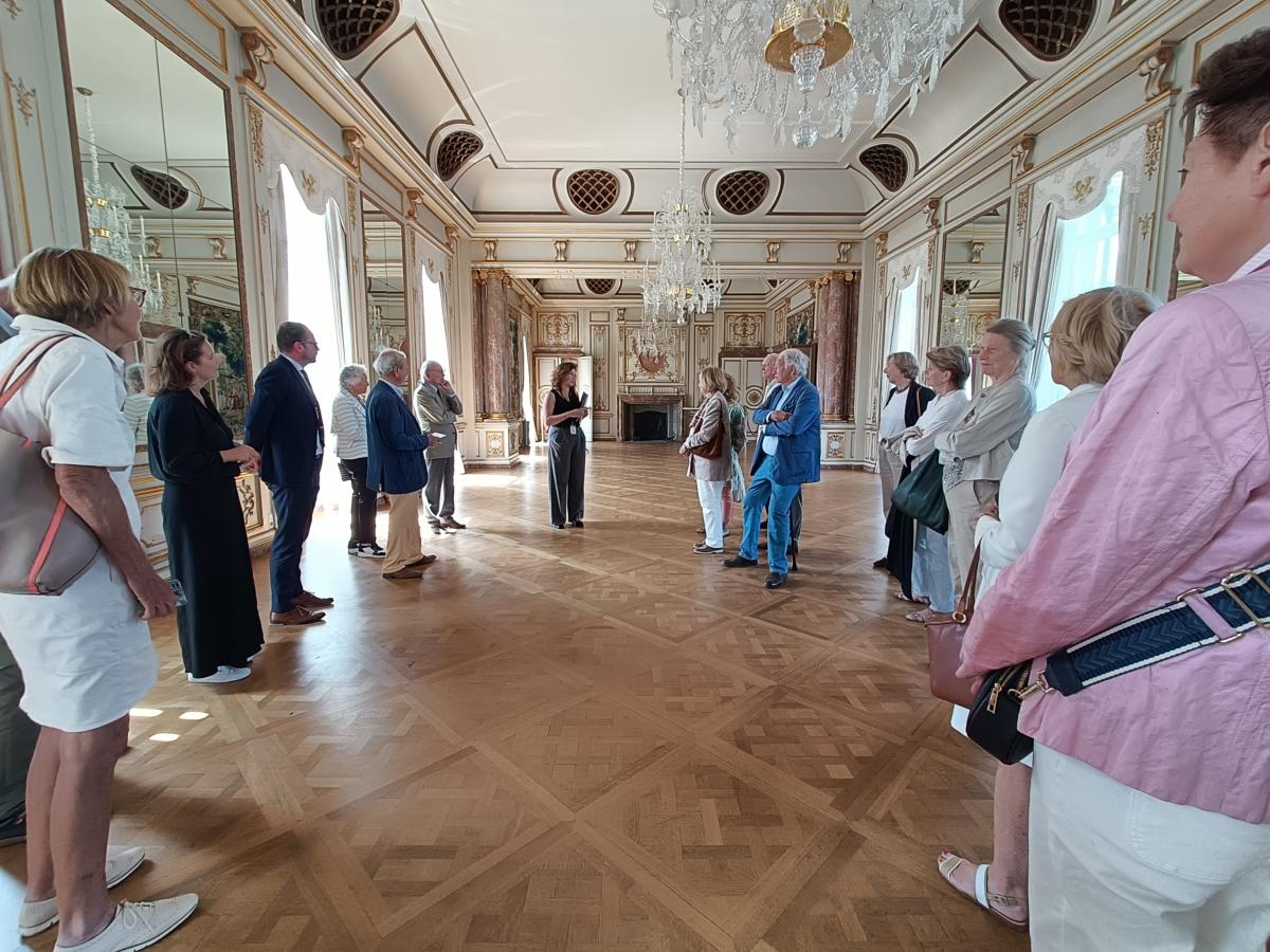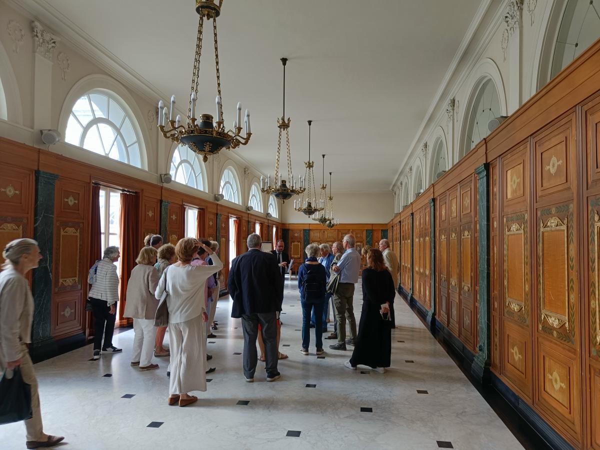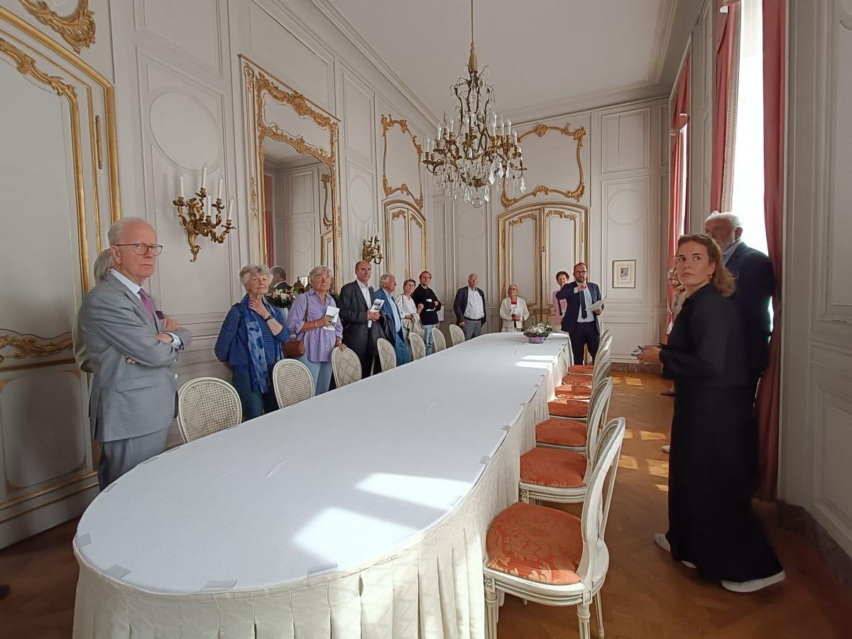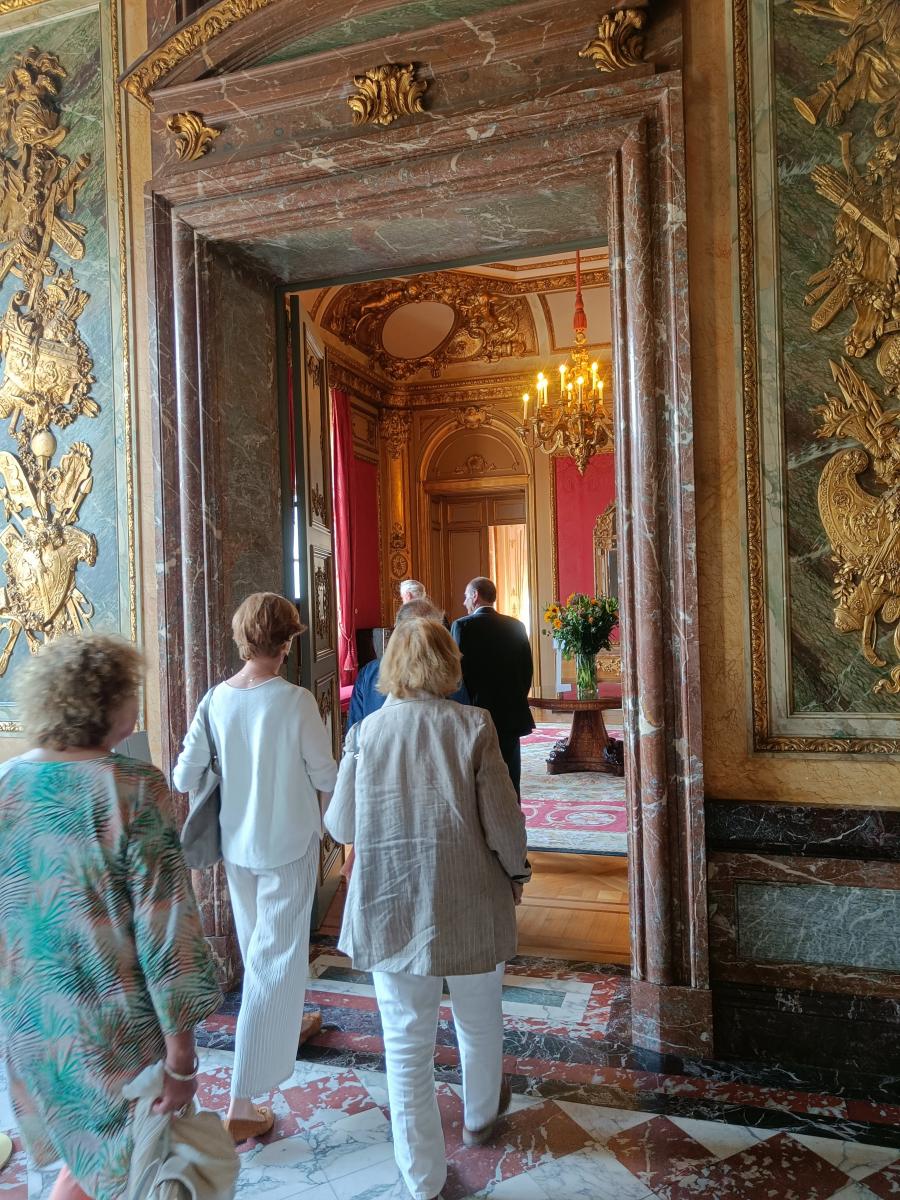 En fin de visite, l’Ambassadeur Pierre Cartuyvels, Chef du Protocole, nous rejoignit et nous fit servir un verre de bienvenue avant de nous expliquer le fonctionnement de cette magnifique institution qui fait honneur à la Belgique. En nous quittant il invita le Quartier des Arts à revenir.
