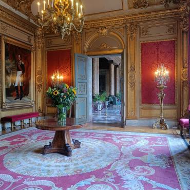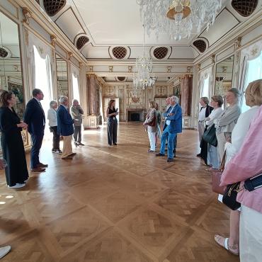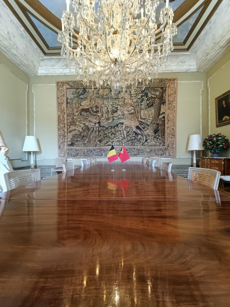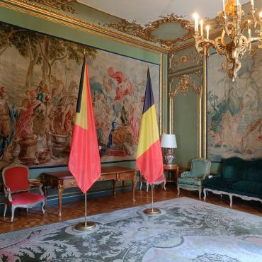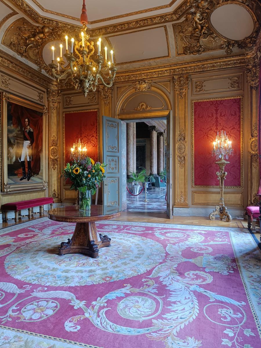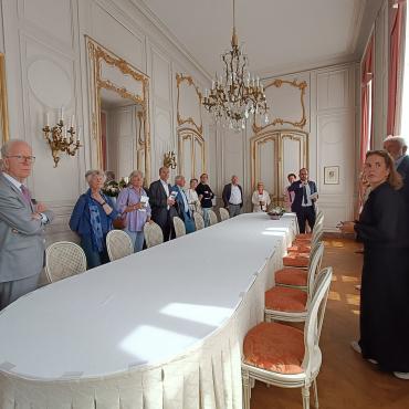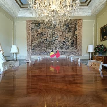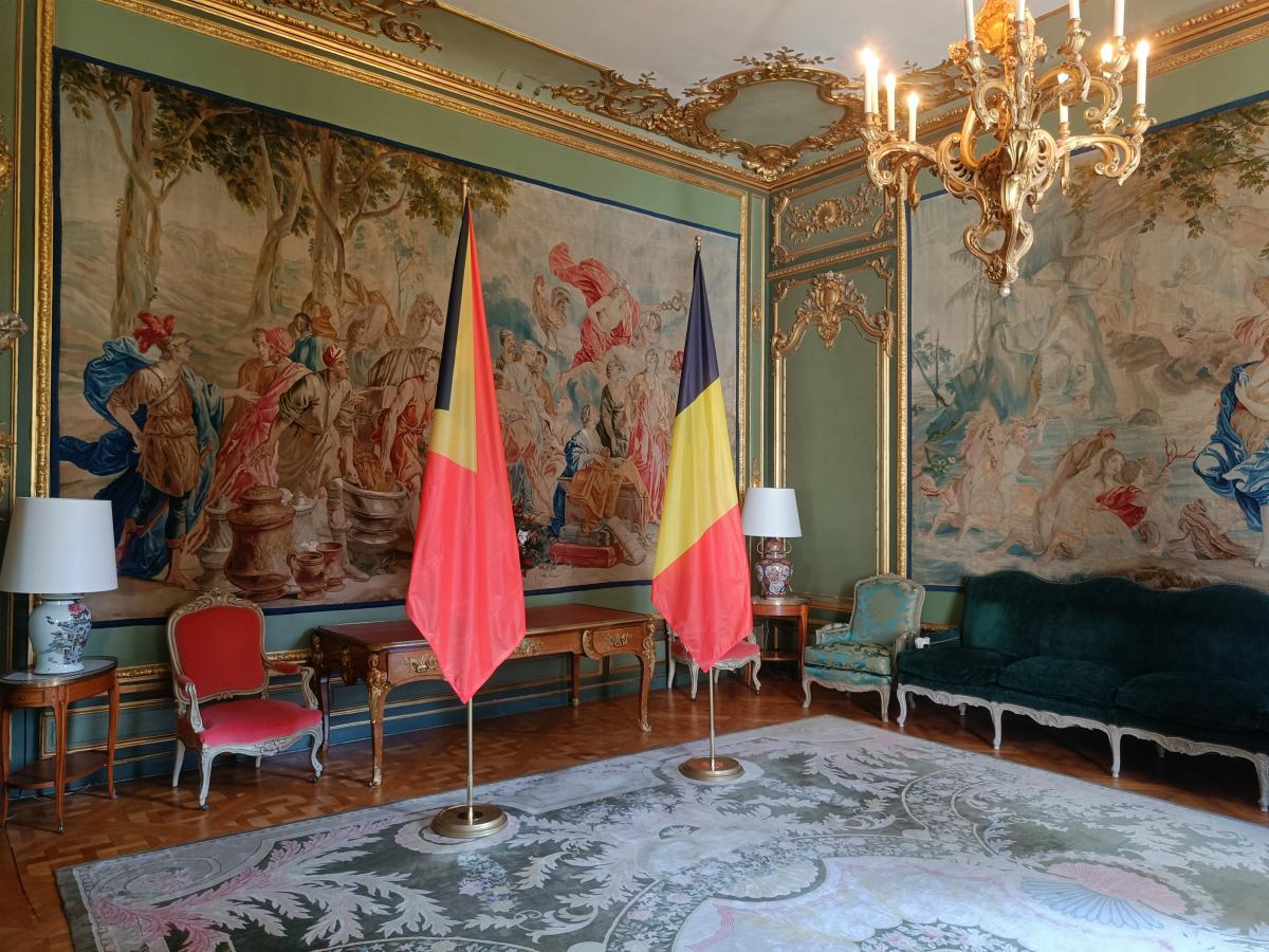 En fin de visite, l’Ambassadeur Pierre Cartuyvels, Chef du Protocole, nous rejoignit et nous fit servir un verre de bienvenue avant de nous expliquer le fonctionnement de cette magnifique institution qui fait honneur à la Belgique. En nous quittant il invita le Quartier des Arts à revenir.