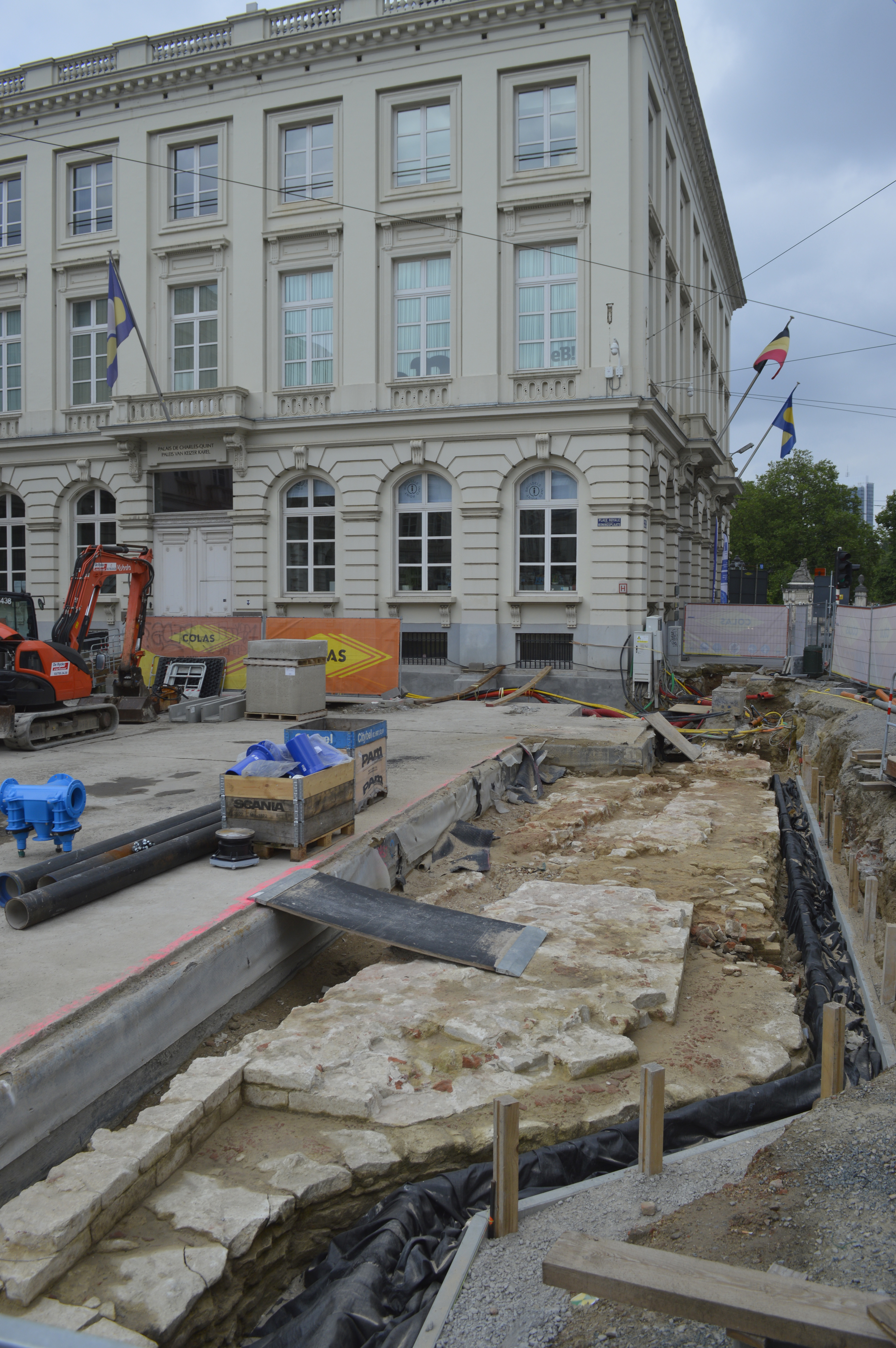 Place Royale, vestiges de la tourelle centrale et du massif du perron monumental d’entrée de l’Aula Magna - ©urban.brussels
