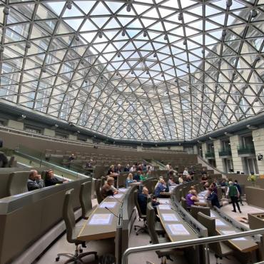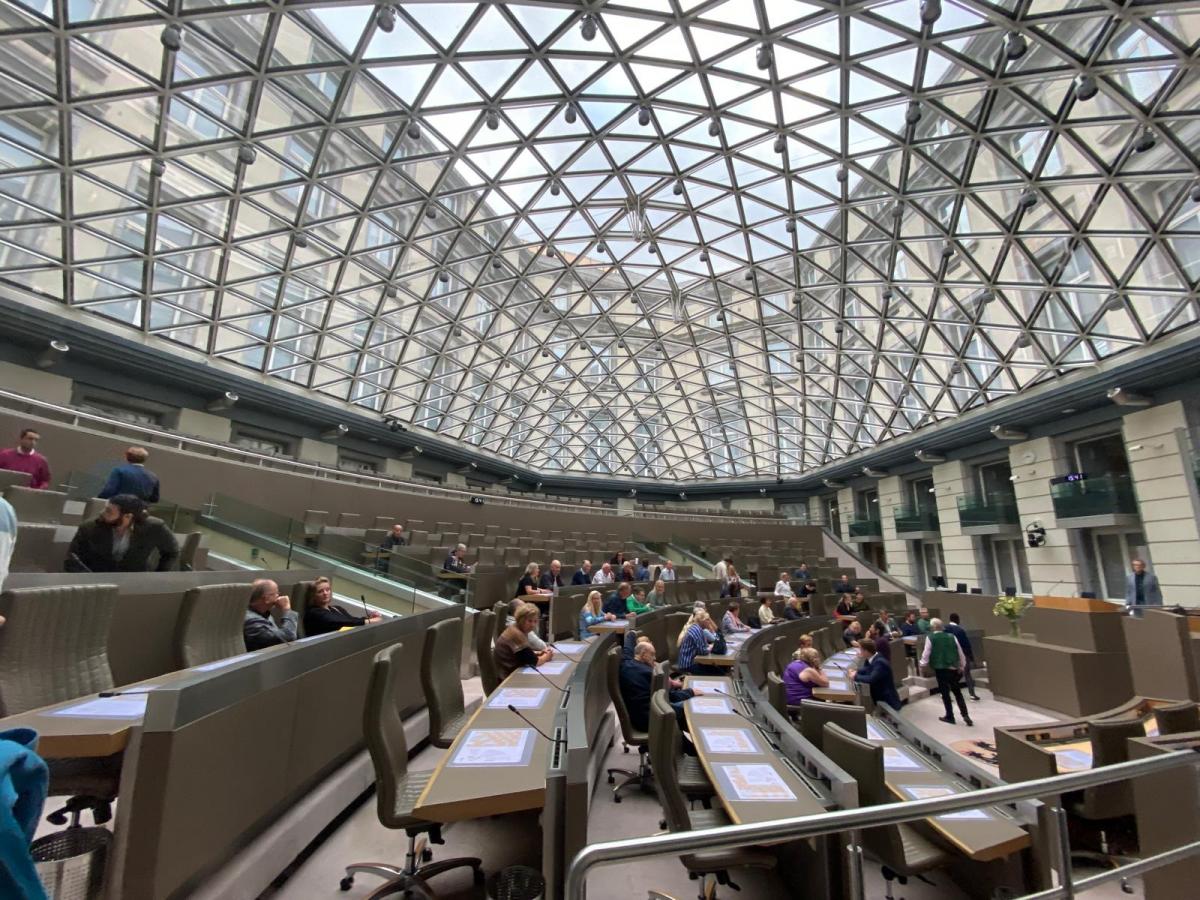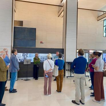 Notre guide a insisté sur les valeurs européennes de la démocratie, de l’Etat de droit et de la place importante des Beaux-Arts dans la gestion de la chose publique. Chaque artiste a pu ainsi, à sa manière, attirer l’attention des parlementaires sur des valeurs qui leur tiennent à cœur : transparence, jeunesse, honneur, respect de l’autre, respect de la parole donnée…