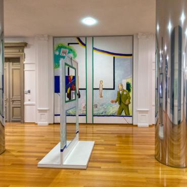 Ce bâtiment contient 400 œuvres d’art, la plupart exposées dans les salles, bureaux et couloirs. Sous la direction d’un guide particulier, nous avons pu ainsi admirer les œuvres de Guillaume Bijl (photo), Berlinde De Bruyckere, Fred Eerdekens (photo © Vlaams Parlement), Jan Fabre, Marie-Jo Lafontaine, Sofie Muller (photo), Panamarenko, Roger Raveel (photo © Vlaams Parlement), Luc Tuymans, Rinus Van de Velde (photo), ...